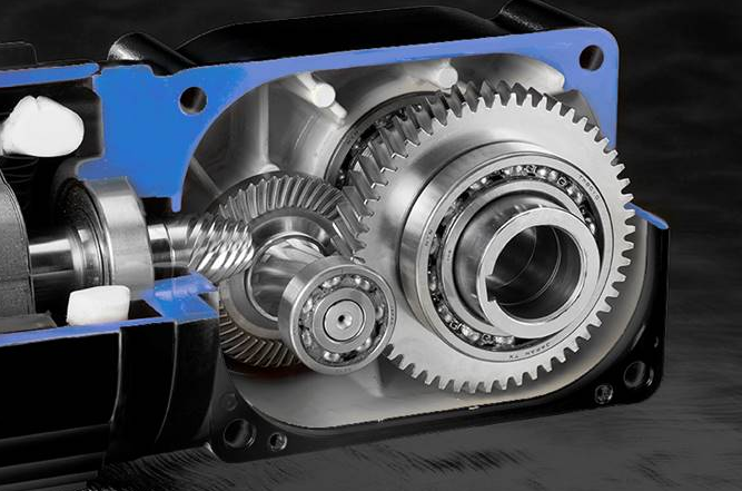 - A bevel gear transmission stage (typically 90° input configuration)