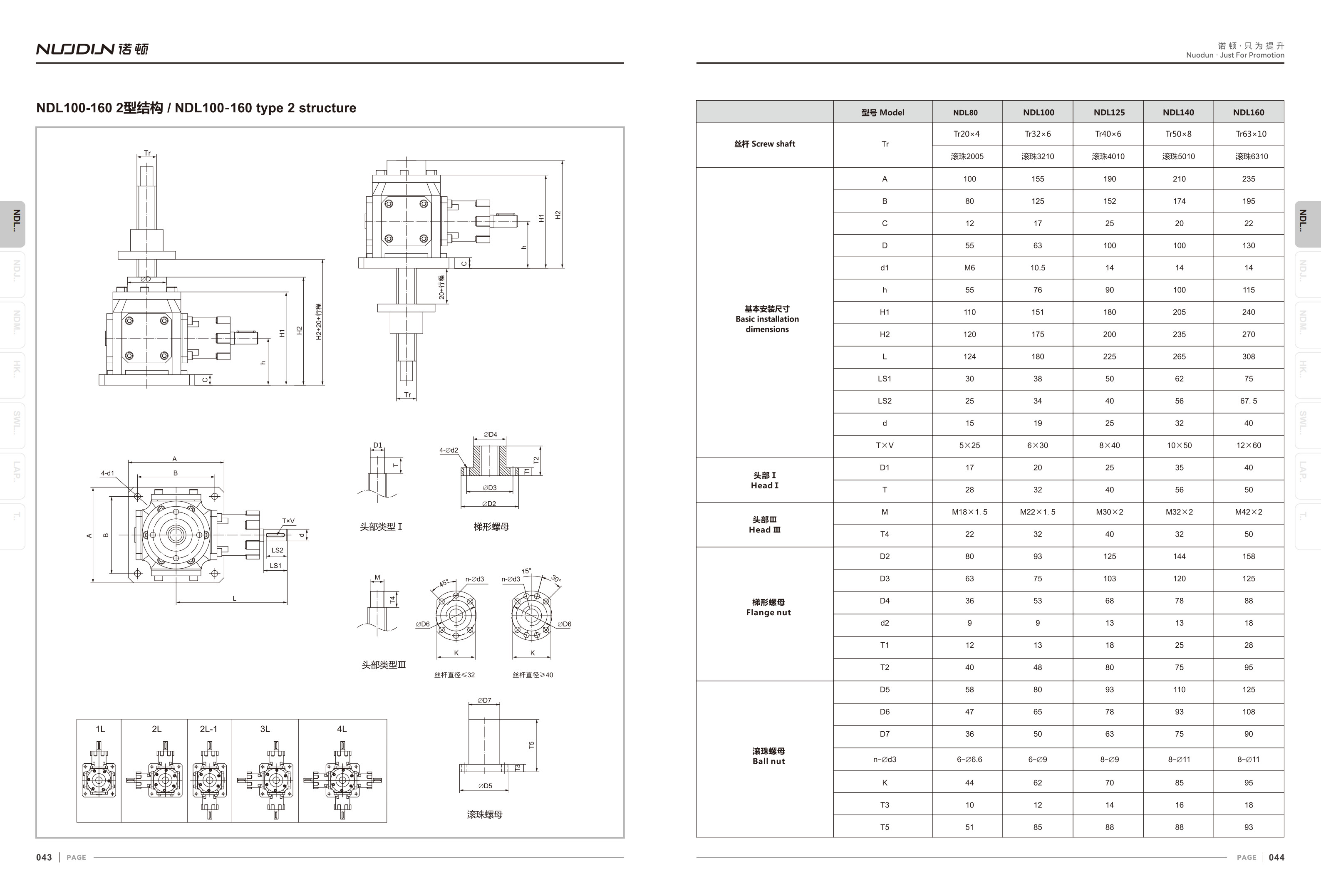 - Multiple screw-moving and nut-moving layouts (1A, 1B, 2A, 2B, 2C, 2D)