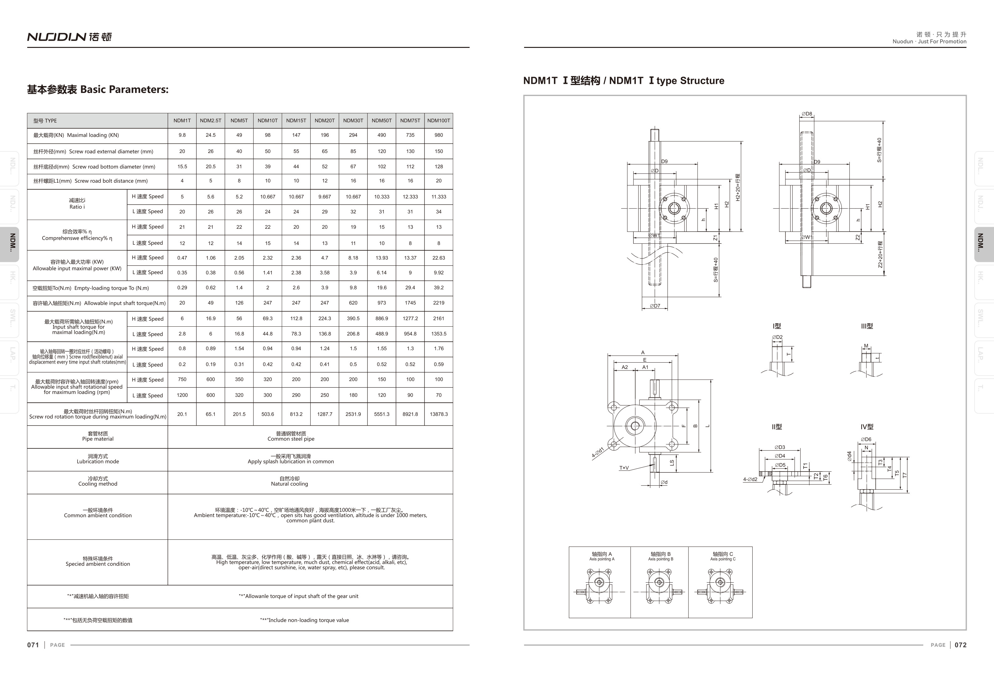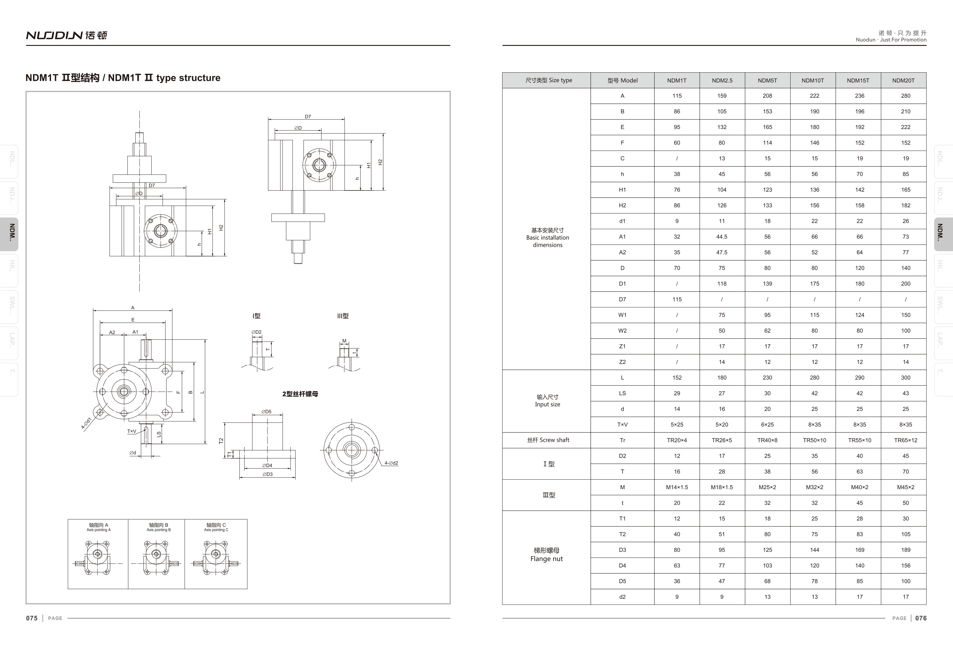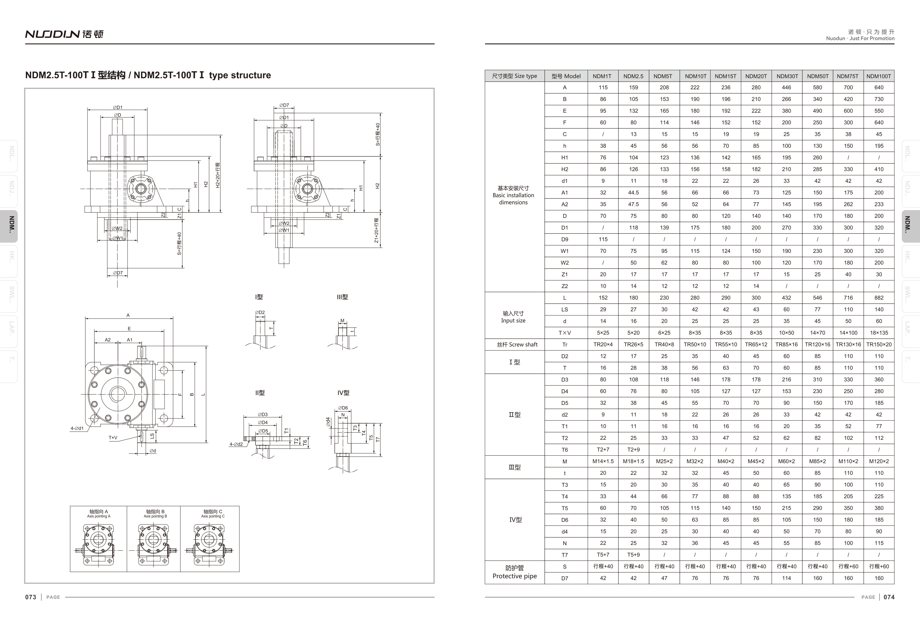 | Type | NDM1T | NDM2.5T | NDM5T | NDM10T | NDM15T | NDM20T | NDM30T | NDM50T | NDM75T | NDM100T |
